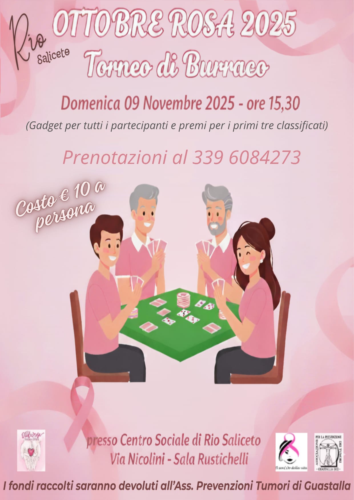 Vi invitiamo a partecipare numerosi, a colorare di rosa Rio Saliceto e a diffondere con noi un messaggio di speranza, salute e condivisione.